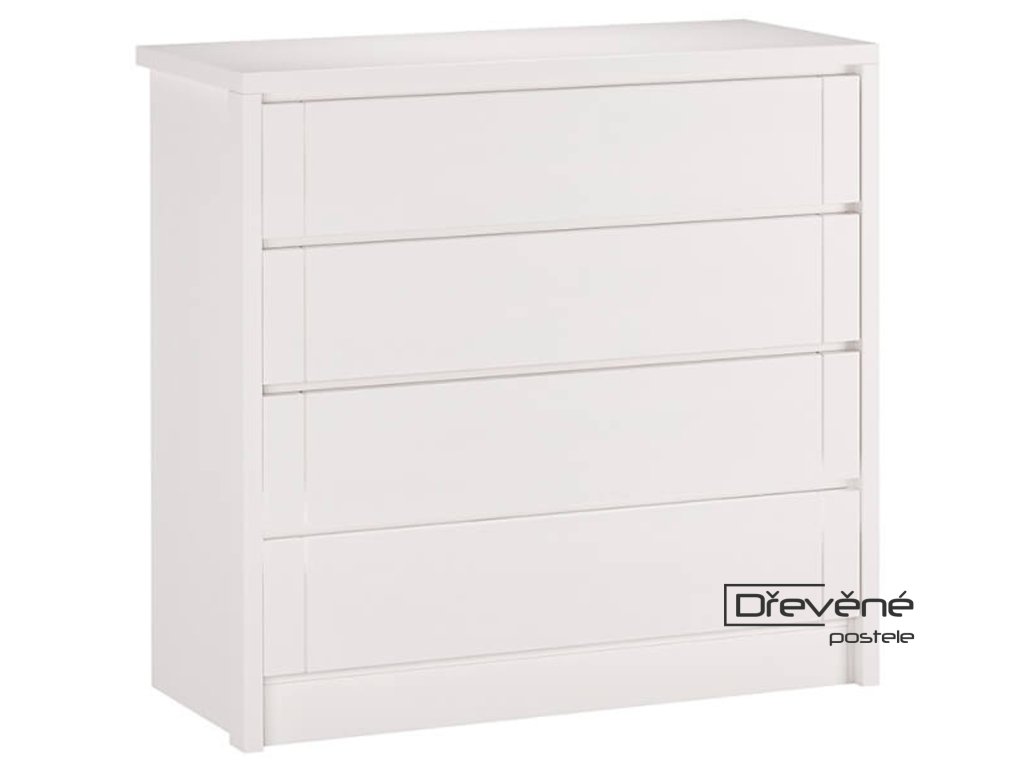 Bílá buková komoda z masivu nabízí praktický úložný prostor ve čtyřech zásuvkách a zároveň zaujme čistým, nadčasovým vzhledem. Kvalitní bukové dřevo zajišťuje pevnost, stabilitu a dlouhou životnost, takže se hodí do každodenně využívaného interiéru.