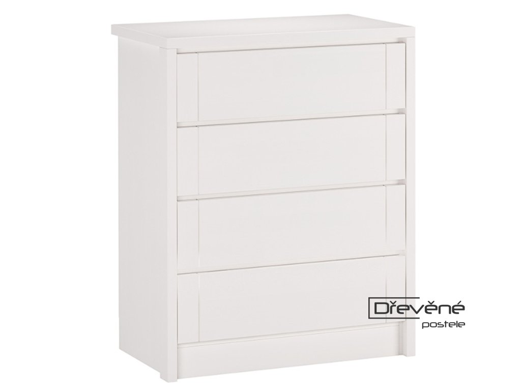 Bílá buková komoda z masivu nabízí čtyři praktické zásuvky pro přehledné uložení oblečení i dalších domácích věcí. Kvalitní bukové dřevo vyniká pevností, stabilitou a dlouhou životností, zatímco elegantní lakované provedení podtrhuje nadčasový vzhled nábytku.