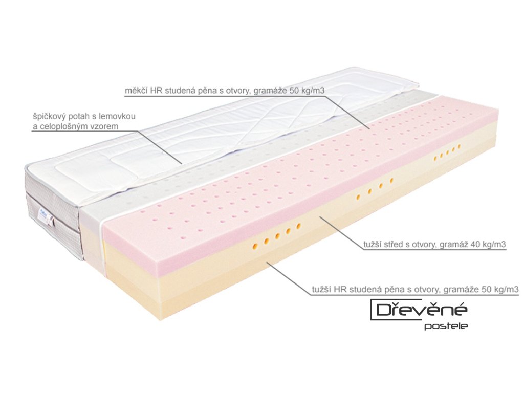Pěnová bio matrace s HR a PUR pěnou nabízí tužší i měkčí stranu, což zajišťuje optimální podporu pro zdravý spánek. Záruka 7 let.