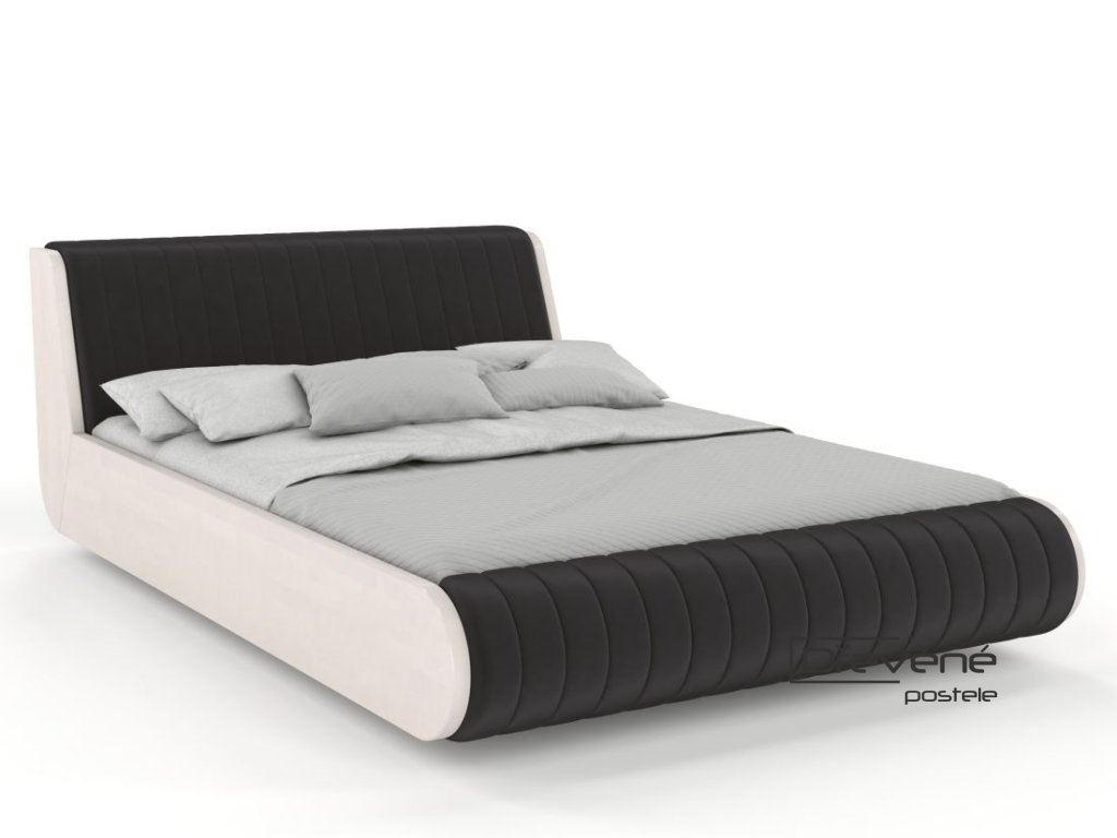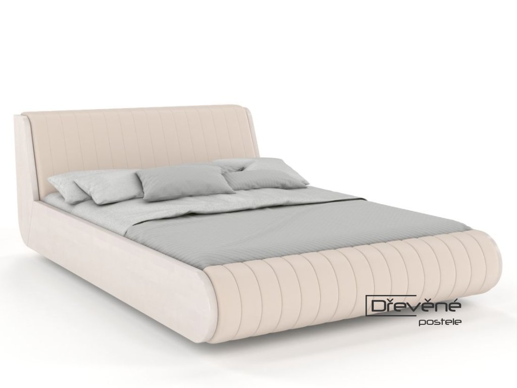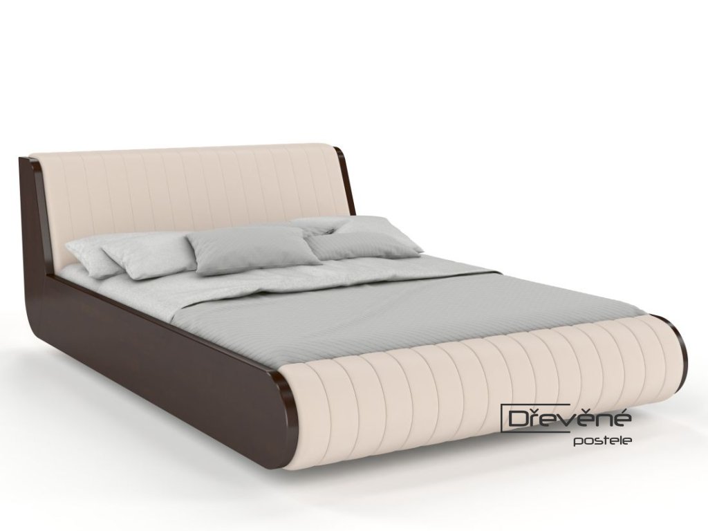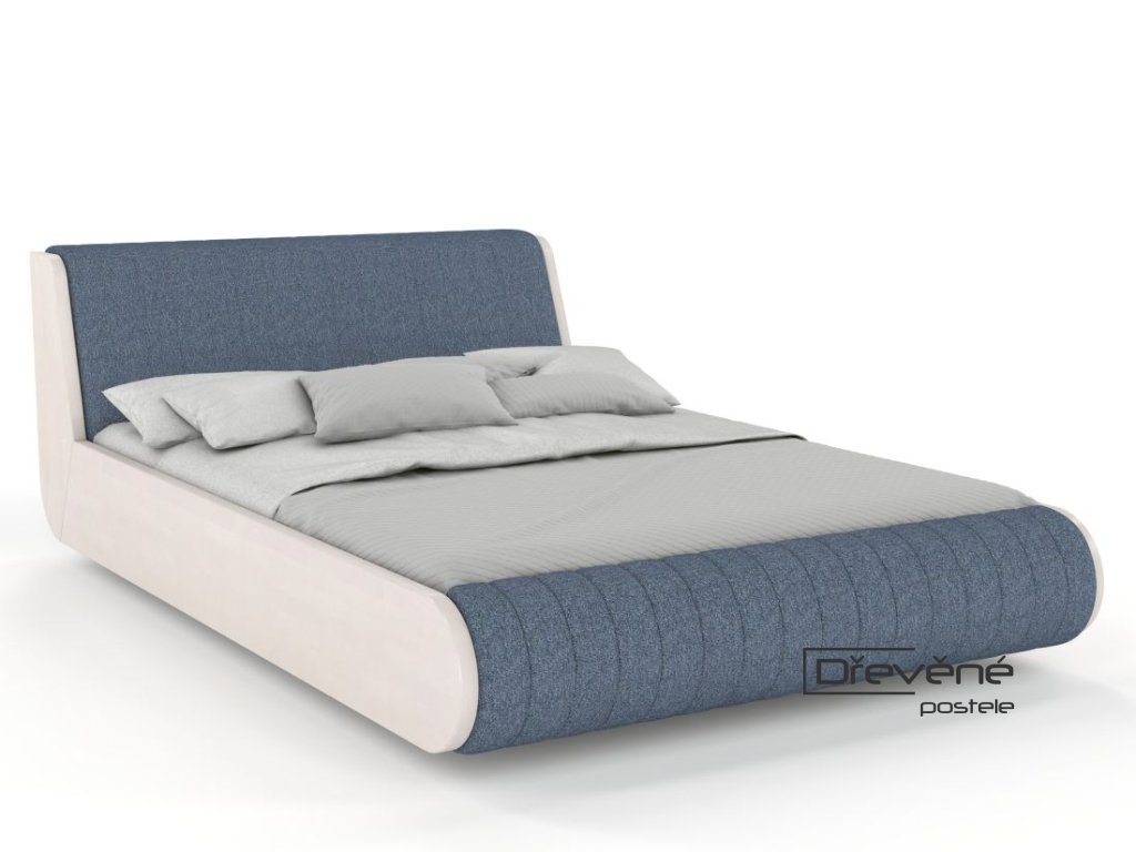 Levitující postel z bukového dřeva 4 cm s nosností 400 kg. Na výběr je z několika barev čalounění předního a zadního čela a odstínů dřeva. Do této manželské postele můžete umístit jednu matraci vcelku 180x200 cm nebo dvě matrace 90x200 cm.