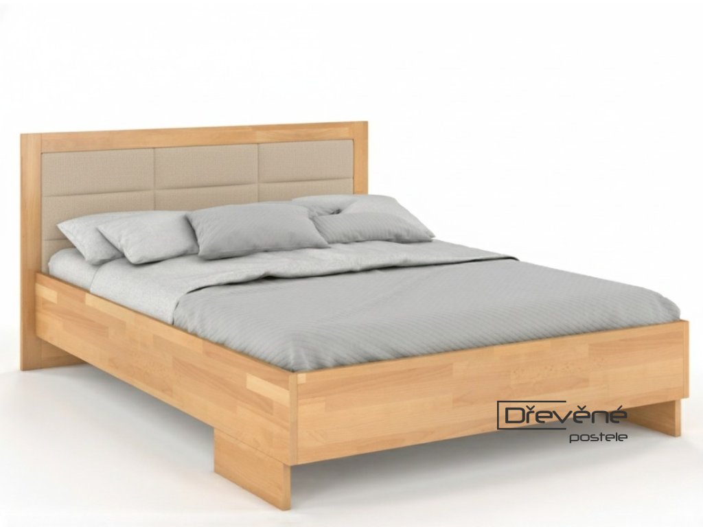 Buková postel s čalouněným čelem - Kalmar - zvýšená