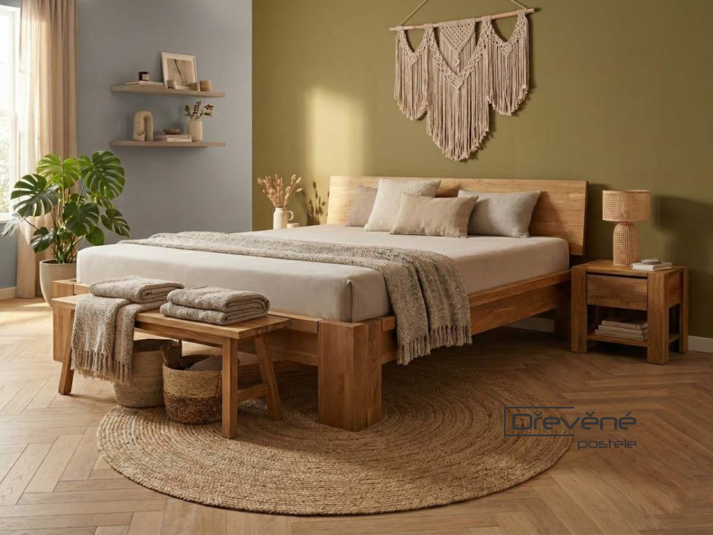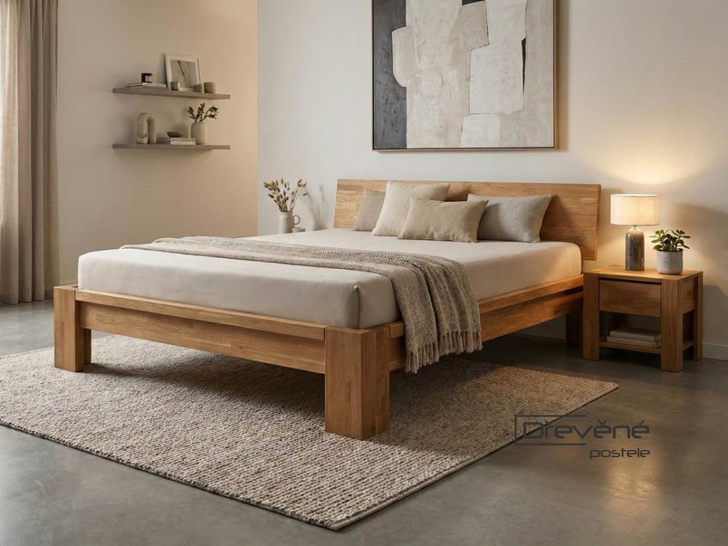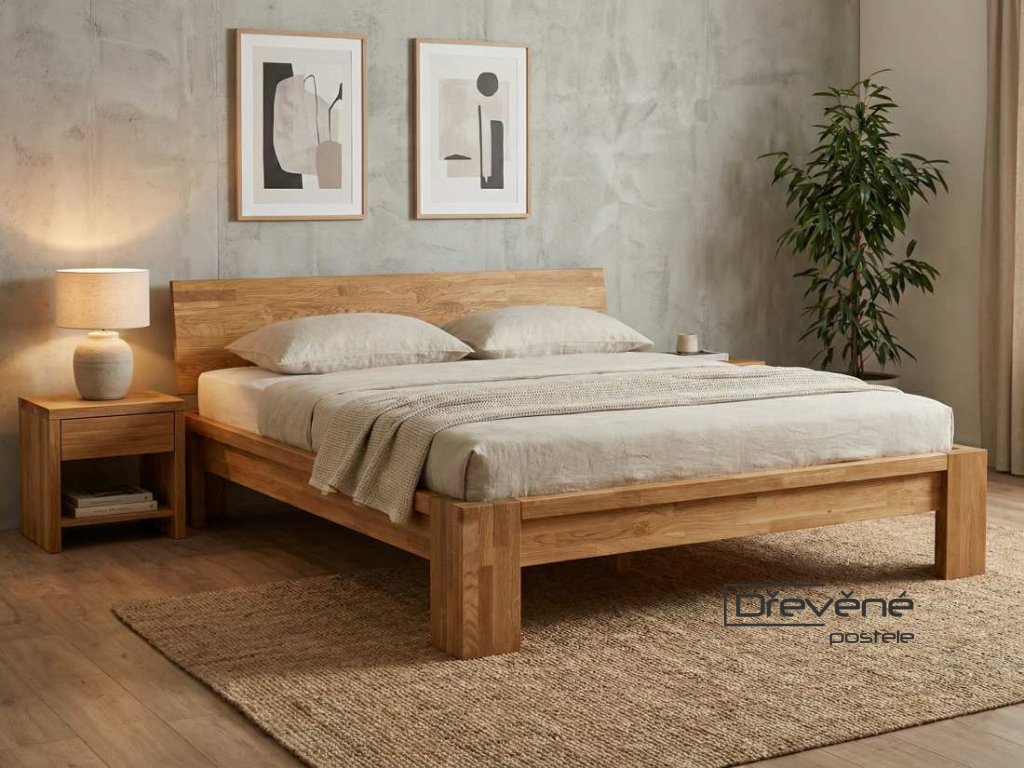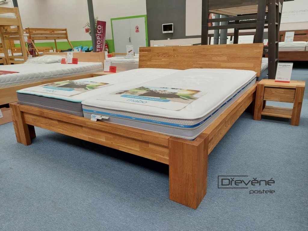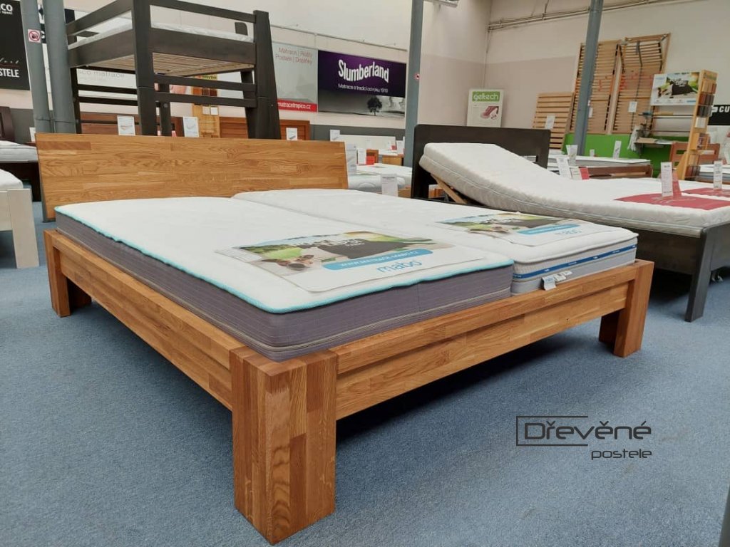 Dubová postel Rustika včetně matrací a roštů zdarma