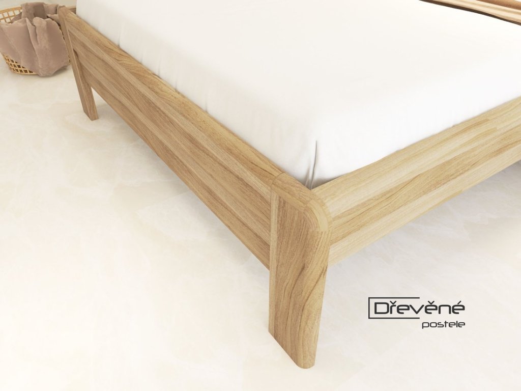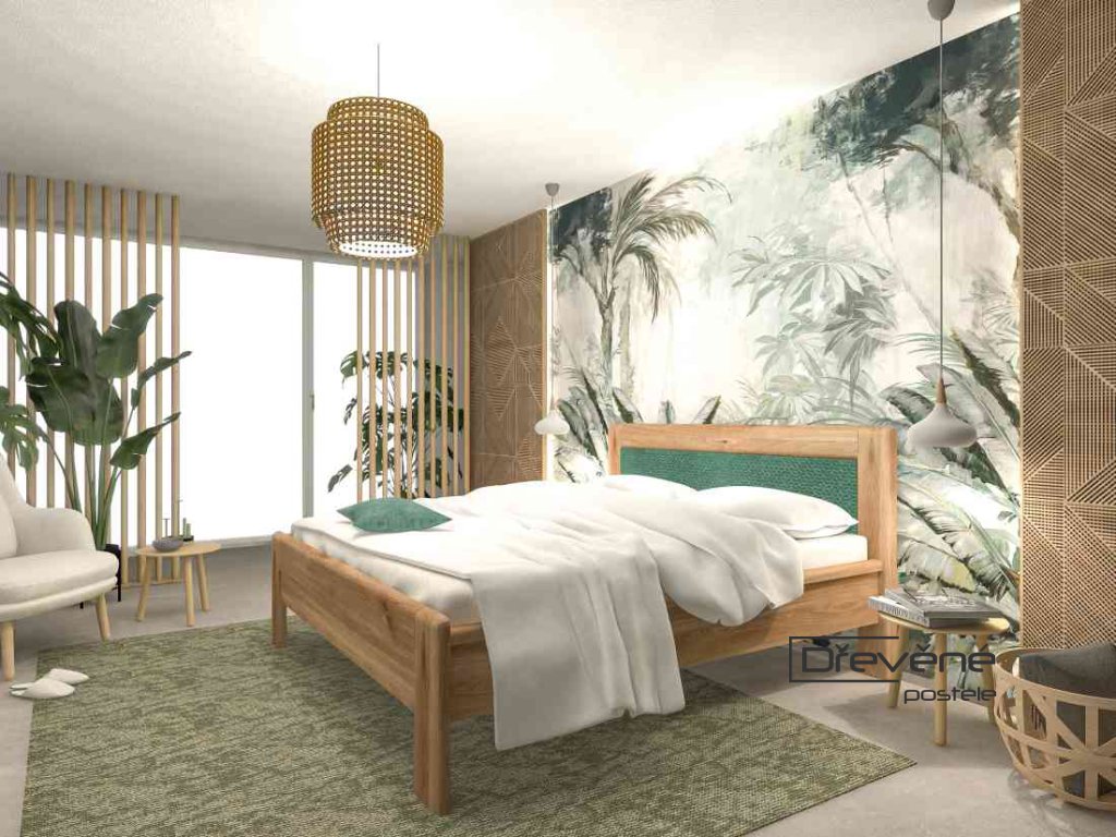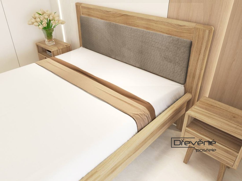 Zvýšená dubová postel 180x200 cm s čalouněným čelem od českého výrobce je vyrobena z 4cm masivního dubu. Má nastavitelnou výšku lehací plochy, která s 20cm matrací dosahuje až 60 cm. Povrch je ošetřen bezbarvým ochranným olejem.