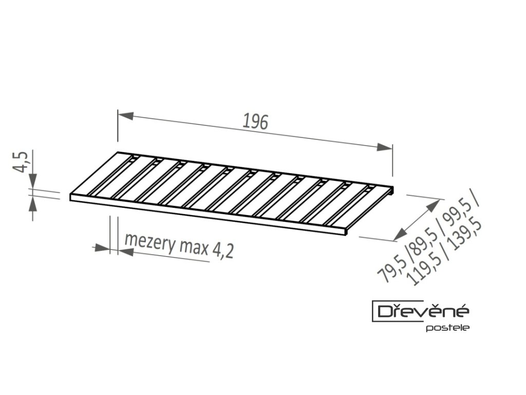 Bytelný laťkový rošt z bukového dřeva nabízí nosnost až 180 kg. Pevně zapuštěné lamely s textilní páskou tlumí pohyb a brání vrzání, což zajišťuje stabilitu a tichý provoz. Ideální volba pro pevnou a pohodlnou oporu matrace.